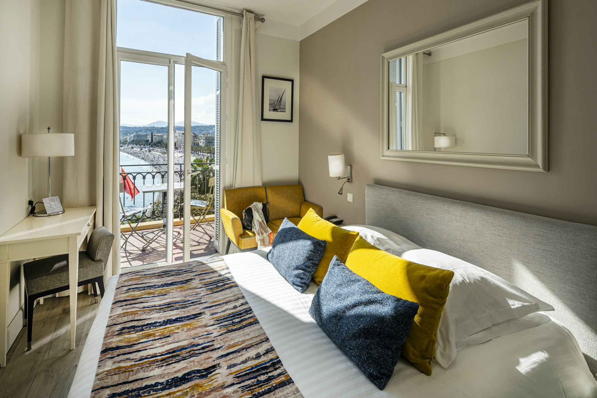 In the Italian style, the hotel overlooks the famous Promenade des Anglais and offers breathtaking views of the Mediterranean from every floor. Whether you admire the dawn or the golden glow of evening, every moment is magical.