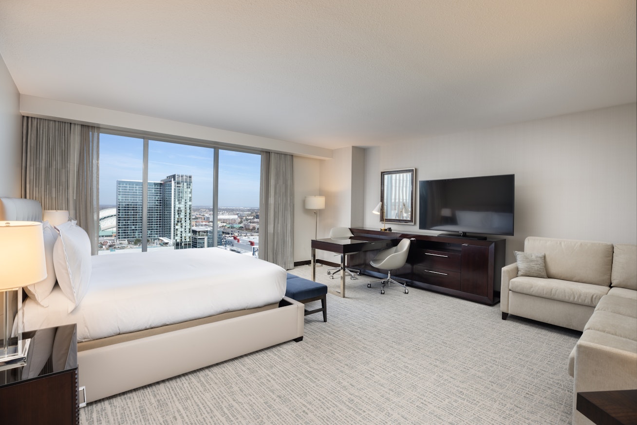 A premier event destination in downtown Houston, we're connected to the George R. Brown Convention Center via skywalk. Enjoy your favorite cocktail and views of the glittering skyline. Relax at the spa, and enjoy the infinity pool, hot tub, and fitness center. WiFi is available throughout the hotel.